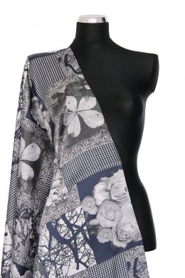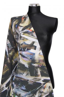 Šatovka krepdešín šedé, khaki vzory