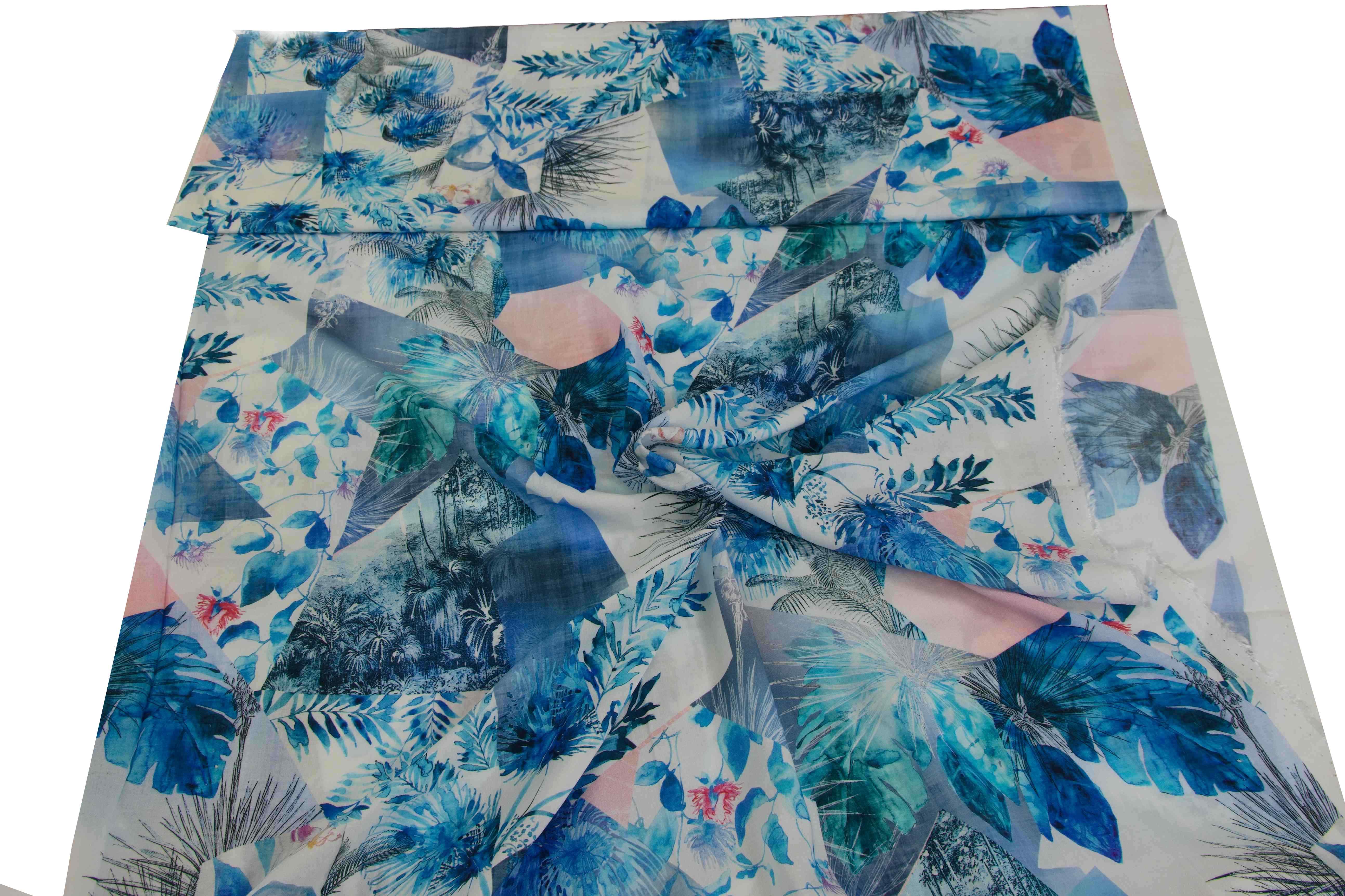 Šatovka 100% viskoza bílá s modrými vzory